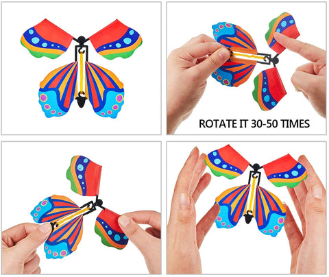- Reliable And Durable - The butterfly's body is made of plastic and rubber bands. It has an excellent elasticity. Rotate the rubber band clockwise or counterclockwise, and the butterfly will fly in different directions.